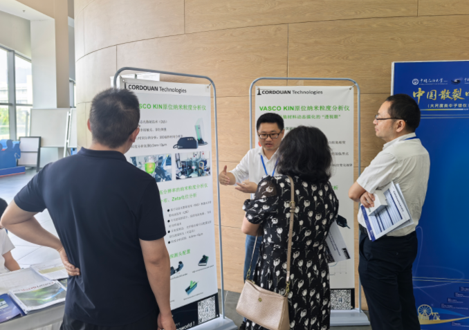 会议现场,与用户交流讨论Cordouan Technologies原位纳米粒度分析仪产品。